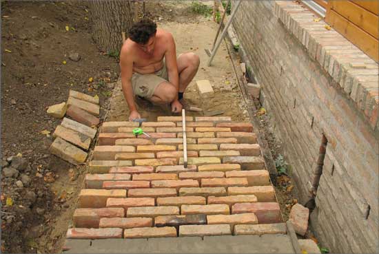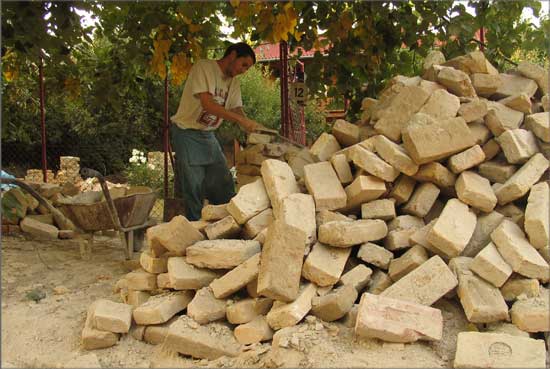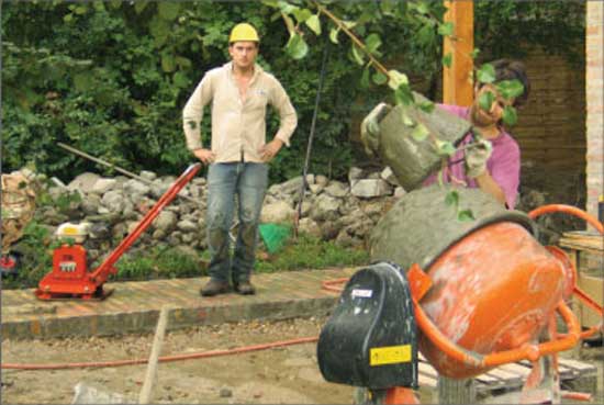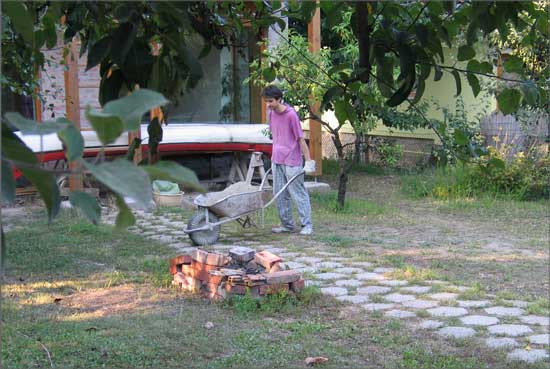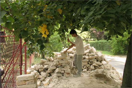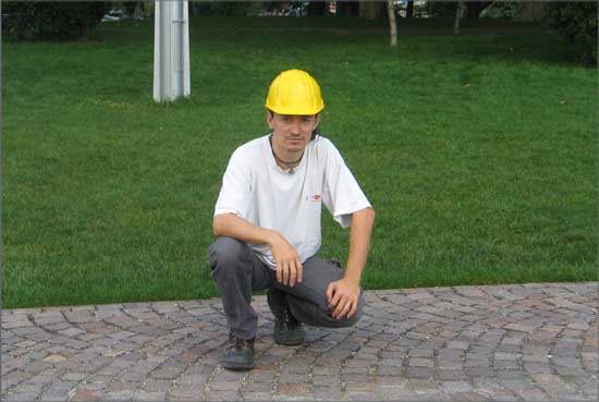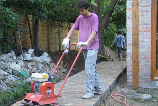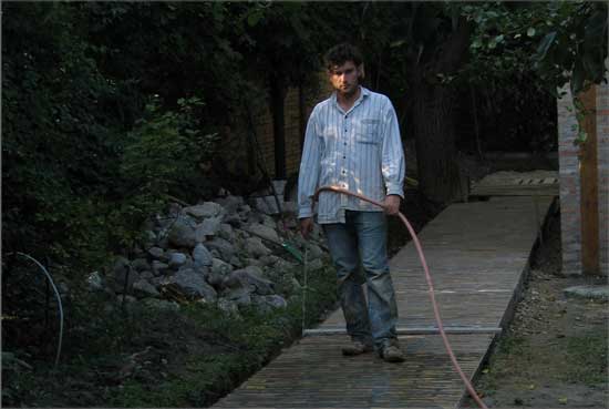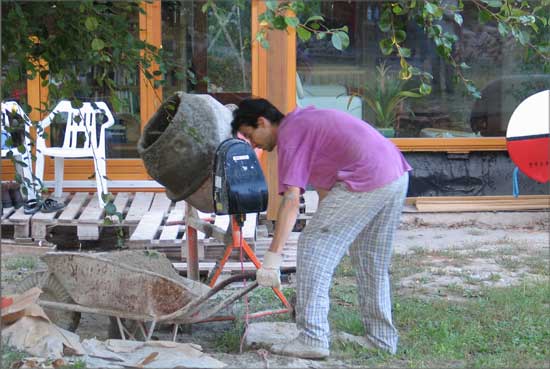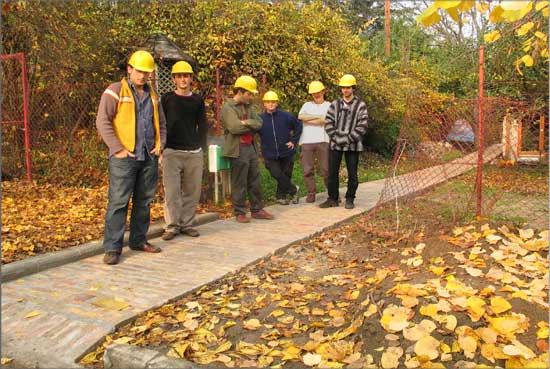 This work came to life as a commission to build a pathway in a garden. I called some unskilled workers to give a hand for the work. By the time I realized that all of them were professional artists, I decided to create a new artistic conception about this work. I therefore documented the working process and complemented the work with a memory board fitted into the pathway, containing the builder-artists’ names, professions and the name of the owner of the pathway.
