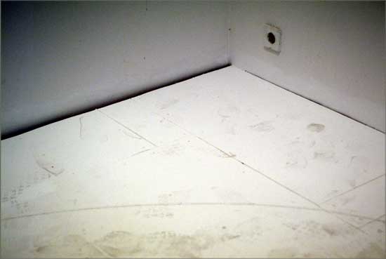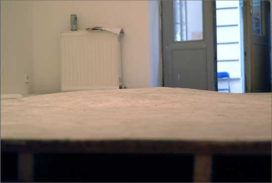 The Architectural Malpractice is a site-specific installation which was made through the preparation of the gallery's floor. A new floor was built over the real floor in a way so that the surface matched the rest of the space perfectly. The artificial floor contained some hidden 'errors'. These errors were designed by an architect in advance, and the architectural plan was exhibited as well.