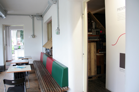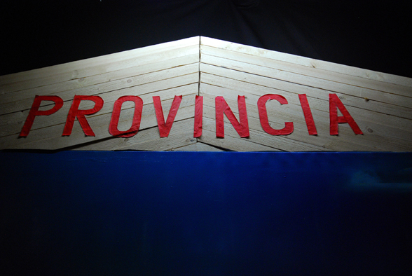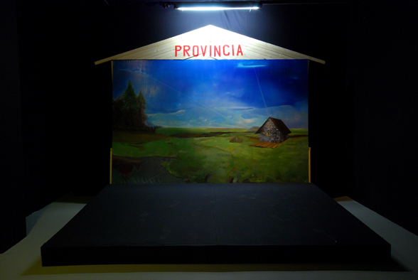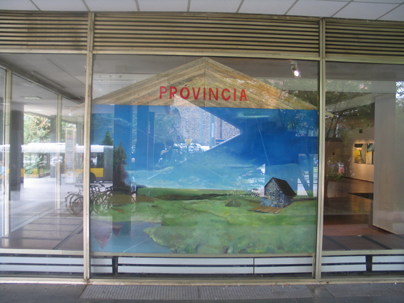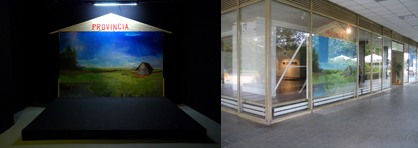The Province-Transmitter painting is a huge landscape image topped by a roof-like slat-construction with the inscription PROVINCIA.