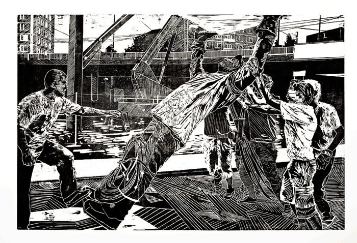 2014, wood cut on paper, 137x100 cm