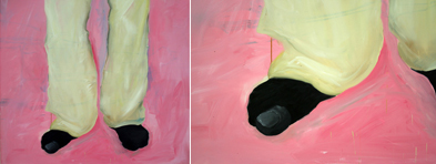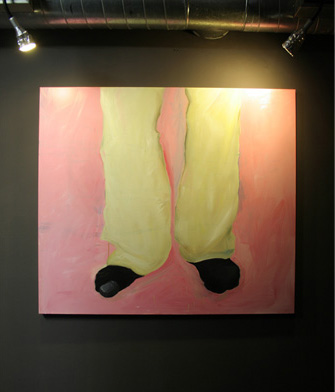 The painting itself took about 20 minutes, afterwards István Csákány stayed without shoes for the whole night. The action reflects on an emblematic and well known piece of a Hungarian artist, Kriszta Nagy with the title: I am a contemporary painter.