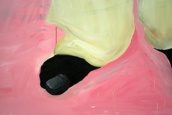 Painting of a grey-painted toe that peeps through a whole in the sock.