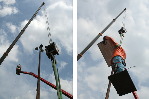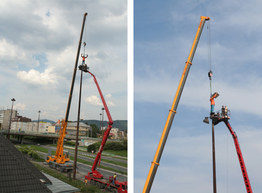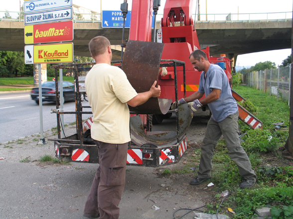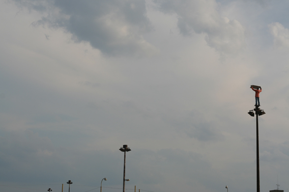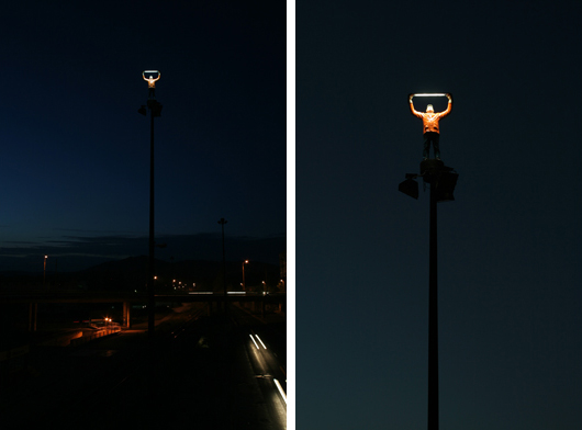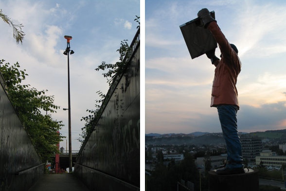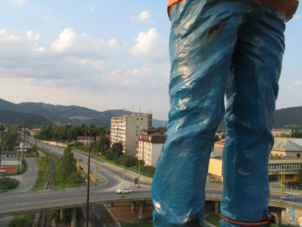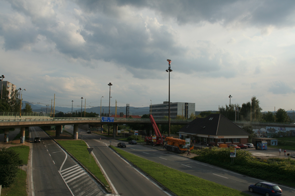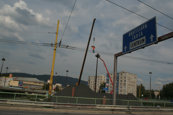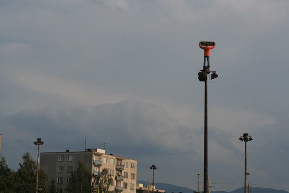 The large roundabout raised on pillars shown on the photo was built by the socialist government in the sixties, in a neighborhood called Záriečie in Zilina, Slovakia.To illuminate the circular bridge and the connecting streets, as well as to prove that wealth, modernization and progress was going along with socialism, huge, 20 meters tall (!) lampposts were erected. The ambitious street construction is still in use, directing mainly the industrial traffic into and out of the city, but the street lights have never been able to fulfill their task. The people meanwhile stole the cables from the rusty iron lampposts, and soon a new, decent lighting system took over their function. Nevertheless, they stayed on their place as over-dimensioned reminders of the achievements and failures of socialism. Today, with their missing function, extraordinary size and formal beauty, they can be seen as public sculptures or monuments.