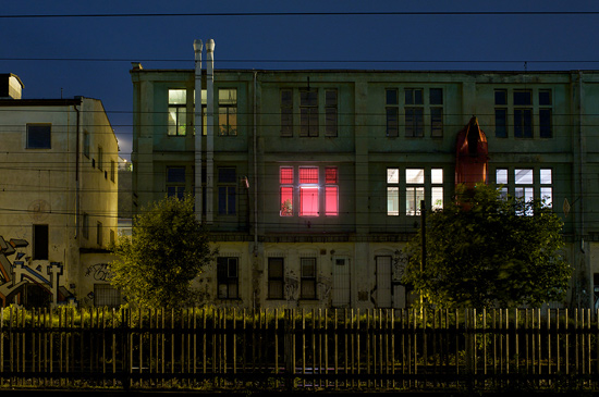 2009, wood construction (5,87x4.50x3.42 m), light bulbs, photography, F: Miklós Surányi