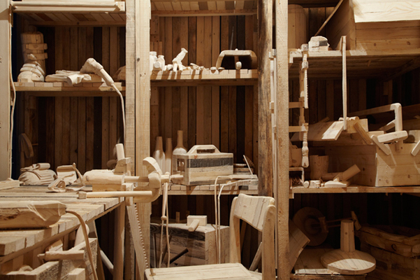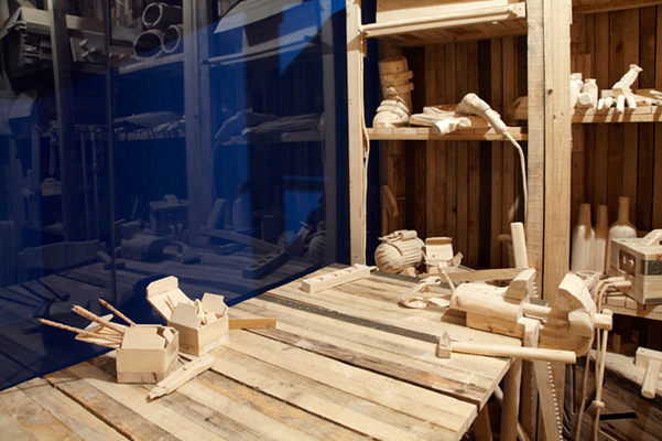 workshop utensils and tools. It makes concrete references to earlier pieces by Csakany like the installation