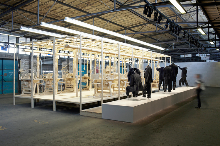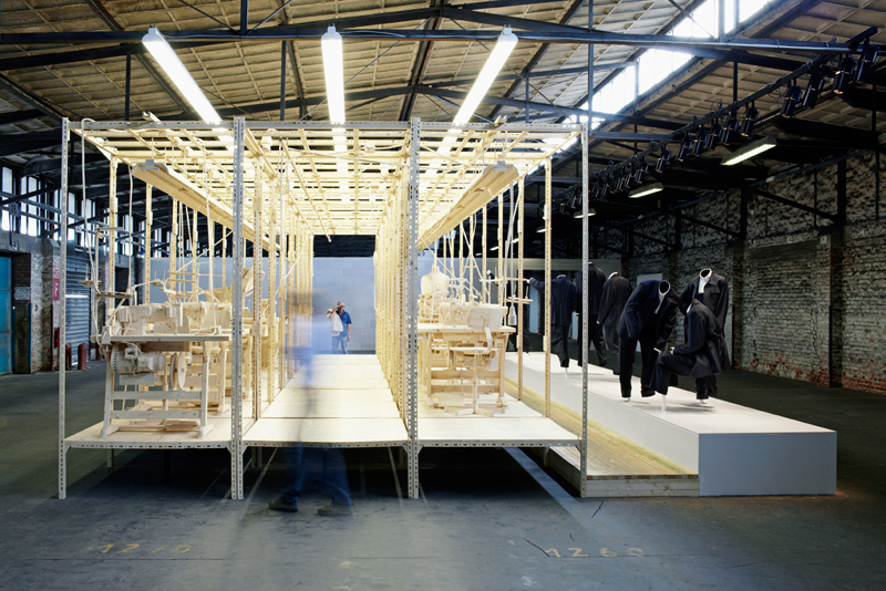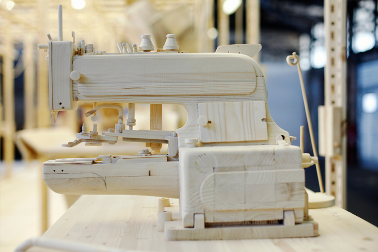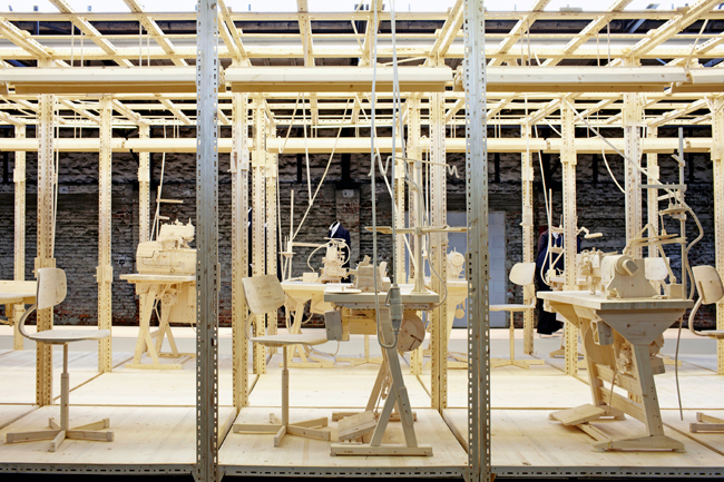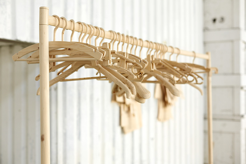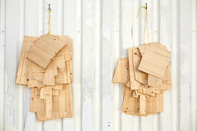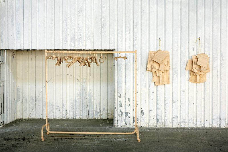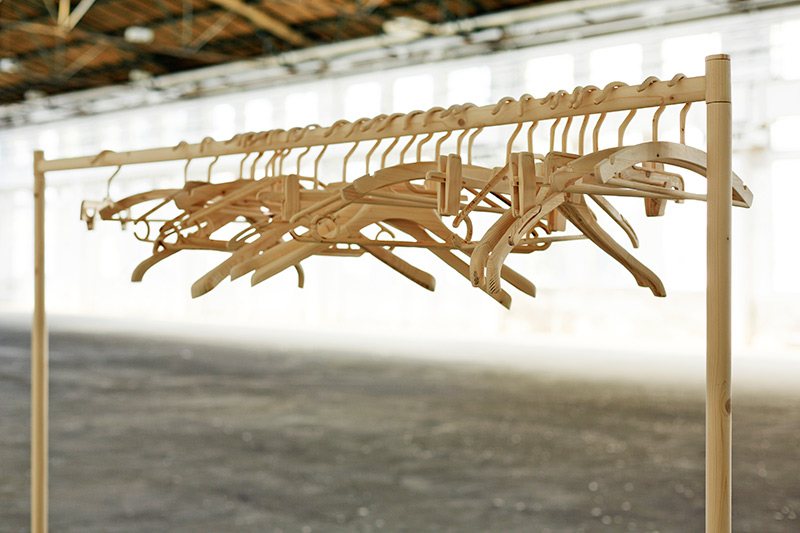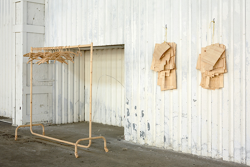2013, installation, wood, dimensions variable (Coat stand: 196x210x73 cm / sewing pattern each: 50x70x10 cm), F: Miklós Surányi