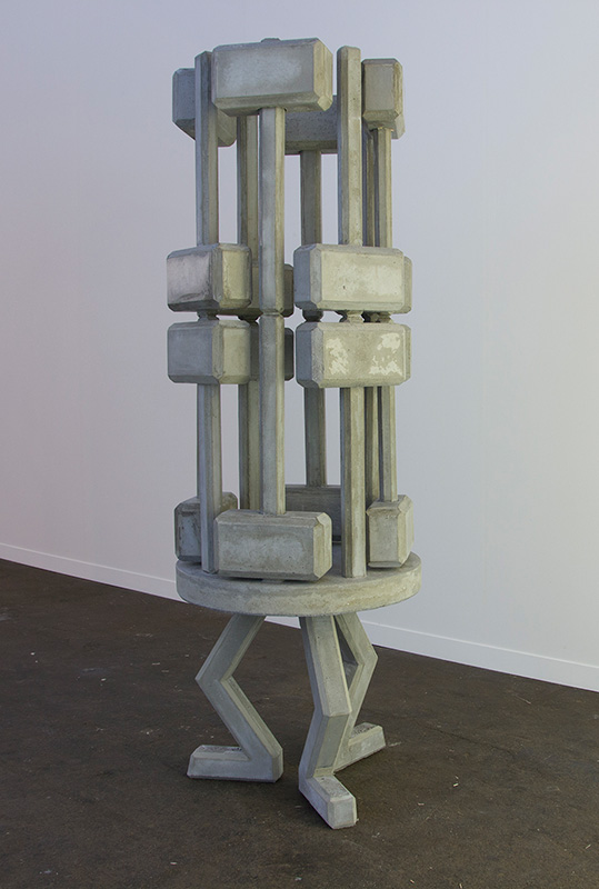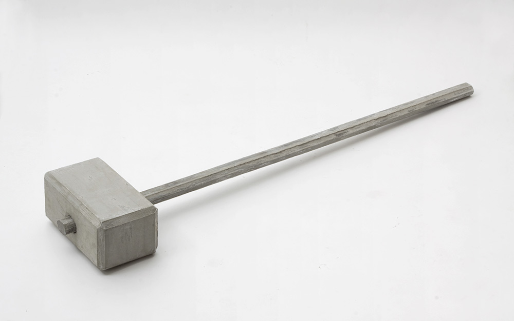 The sculpture merges the motif of the hammer with the building material of concrete and the aesthetic of