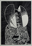 The person on the woodcut " Autoportrait" - the artist's self-portrait - wears on his head a seemingly bizarre device, responsible for more receptive senses, more specifically for a better hearing, while referring to the impact of certain devices that are forced on us and demand our full attention. The picture reflects on the role that the artist plays in society and the expectations he has to face: instead of the observer, surveillance is the main topic.