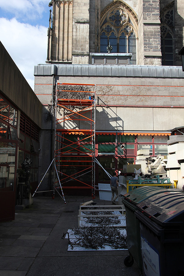 For Finding a withered creeping-ivy found on façade of the restoration workshop beneath the Cologne Cathedral has been transformed as an abstract relief, a peculiar gloomy frieze.